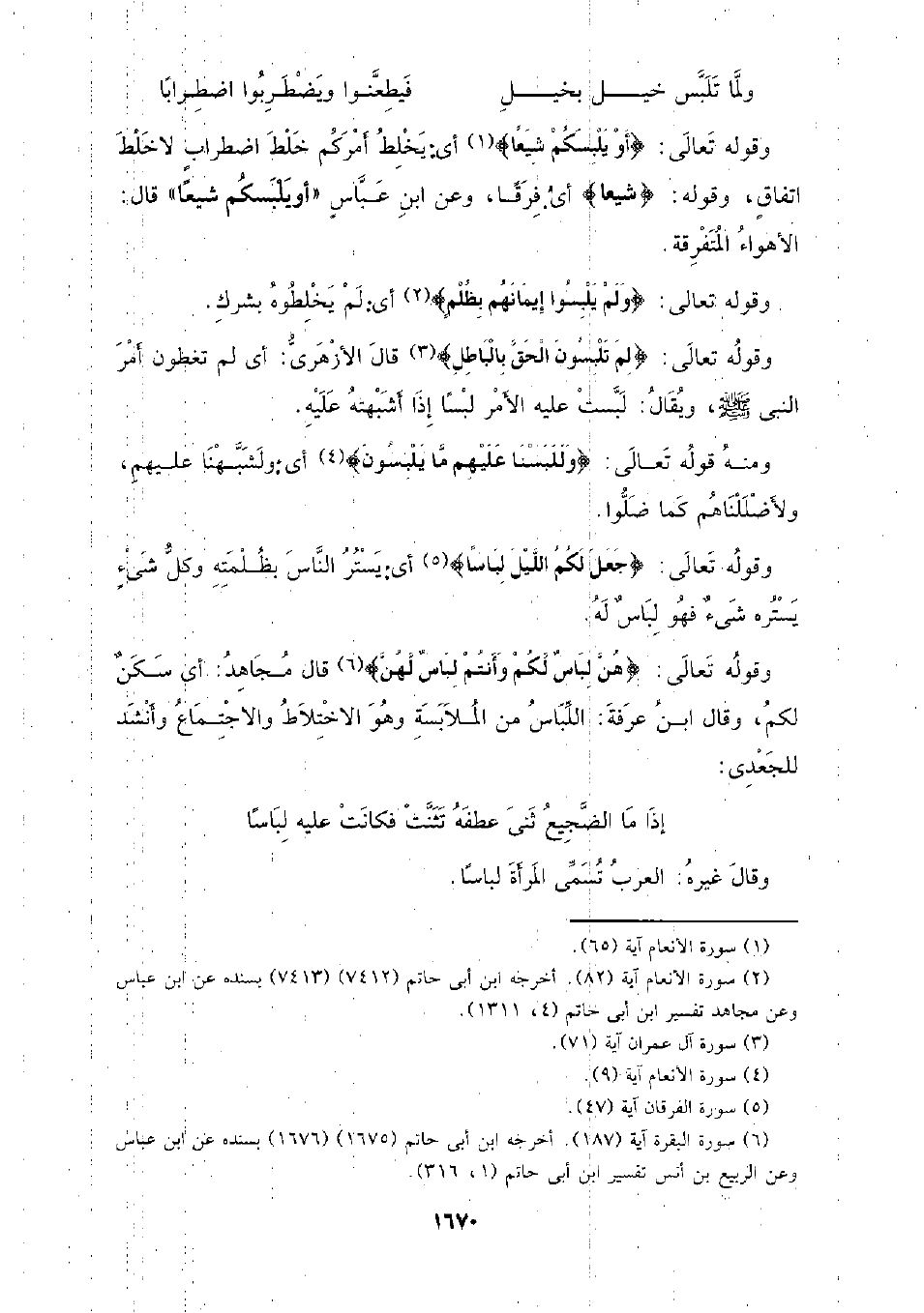 وقوله تعالى: {أو يلبسكم شيعا} أي: يخلط أمركم خلط اضطراب لا خلط اتفاق، وقوله: {شيعا} أي: فرقا، وعن ابن عباس (أو يلبسكم شيعا) قال: الأهواء المتفرقة.