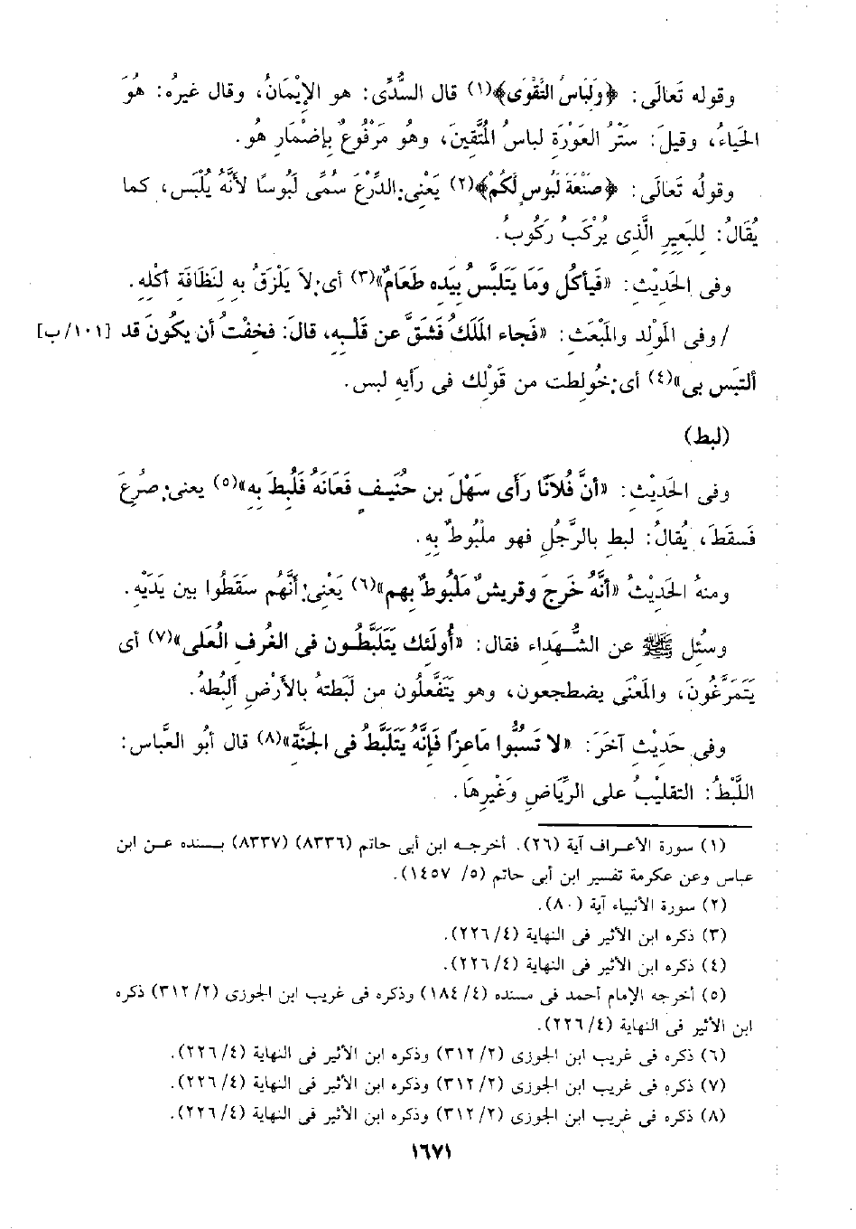 وفي حديث آخر: (لا تسبوا ما عزا فإنه يتلبط في الجنة) قال أبو العباس: اللبط: التقليب على الرياض وغيرها.