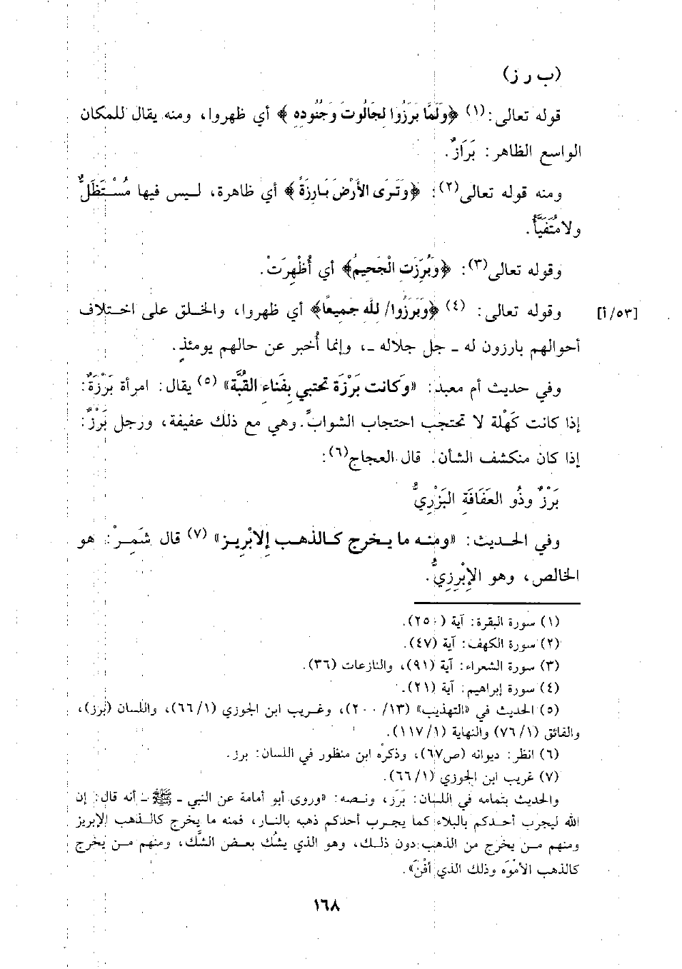 وفي الحديث: (ومنه ما يخرج كالذهب إلابريز) قال شمر: هو الخالص، وهو الإبرزي.