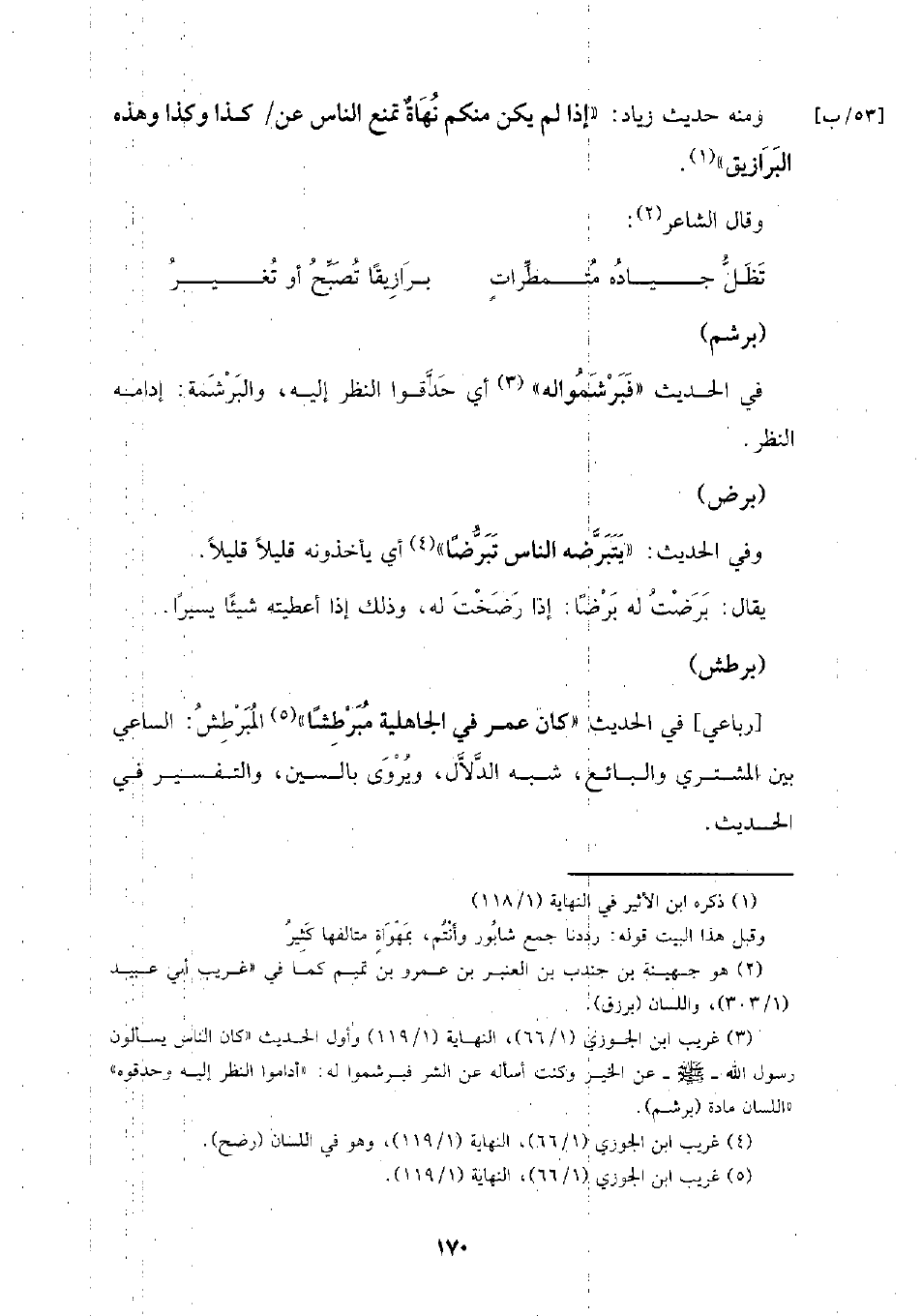 ومنه حديث زياد: (إذا لم يكن منكم نهاة تمنع الناس عن/ كذا وكذا وهذه البرازيق).