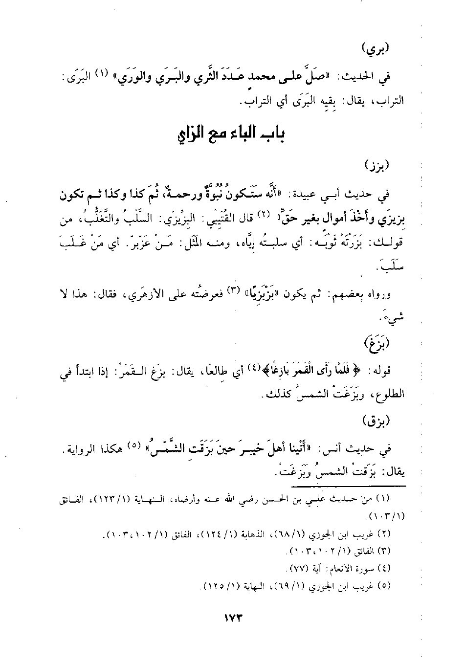 في حديث أبي عبيدة: (أنه ستكون نبوة ورحمة، ثم كذا وكذا ثم تكون بزيزي وأخذ أموال بغير حق) قال القتيبي: البزيزي: السلب والتغلب، من قولك: بزرته ثوبه: أي سلبته إياه، ومنه المثل: من عزبر. أي من غلب سلب.