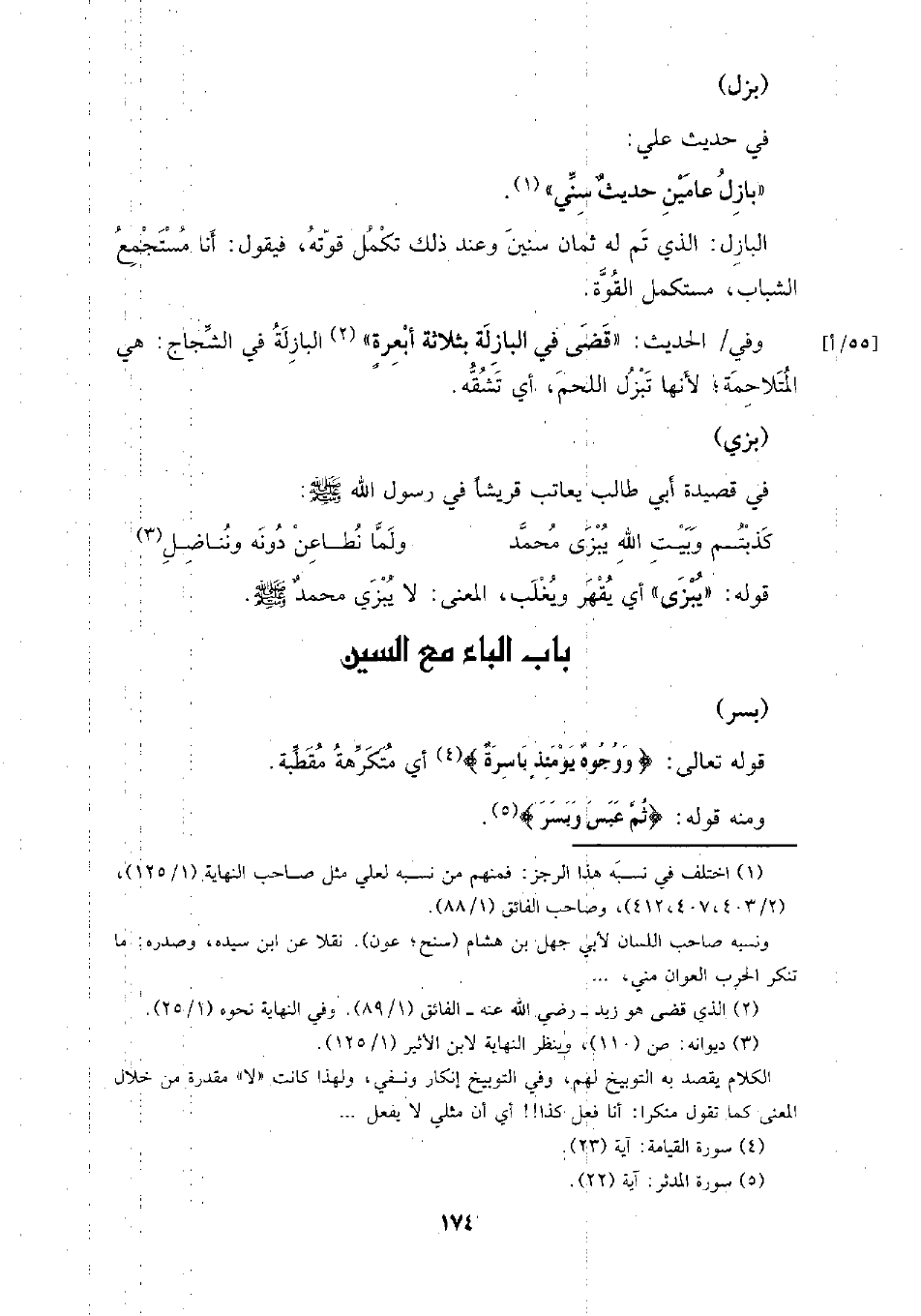 وفي/ الحديث: (قضى في البازلة بثلاثة أبعرة) البازلة في الشجاج: هي المتلاحمة؛ لأنها تبزل اللحم، أي تشقه.