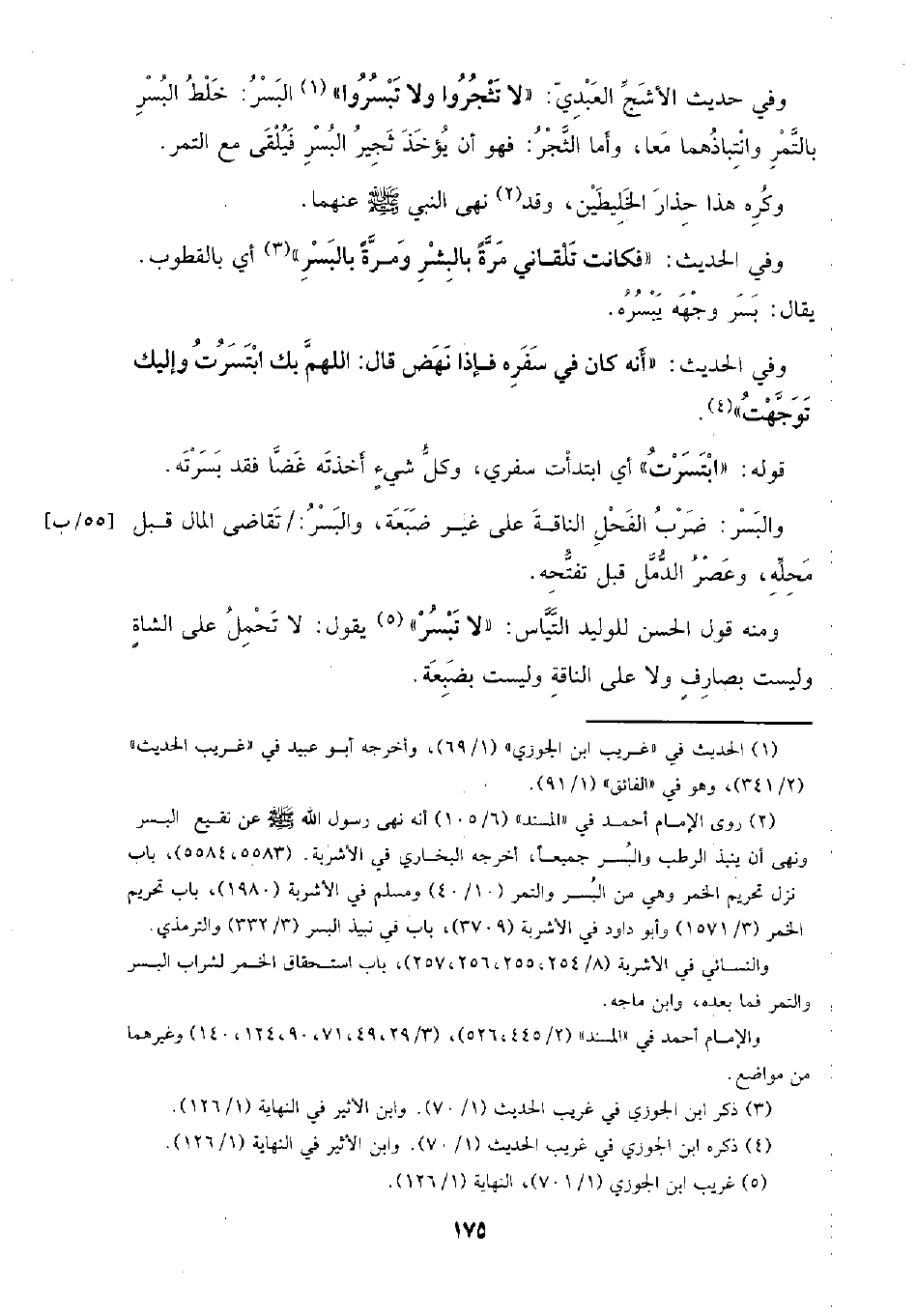 وفي حديث الأشج العبدي: (لا تثجروا ولا تبسروا) البسر: خلط البسر بالتمر وانتباذهما معا، وأما الثجر: فهو أن يؤخذ ثجير البسر فيلقى مع التمر.