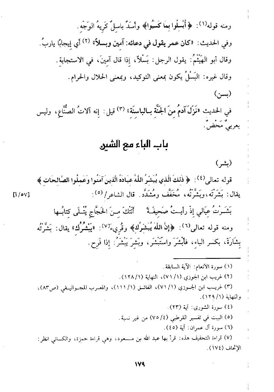 ومنه قوله تعالى: {إن الله يبشرك} وقرئ: (يبشرك) يقال: بشرته بشارة، بكسر الباء، فأبشر واستبشر، وبشر يبشر: إذا فرح.