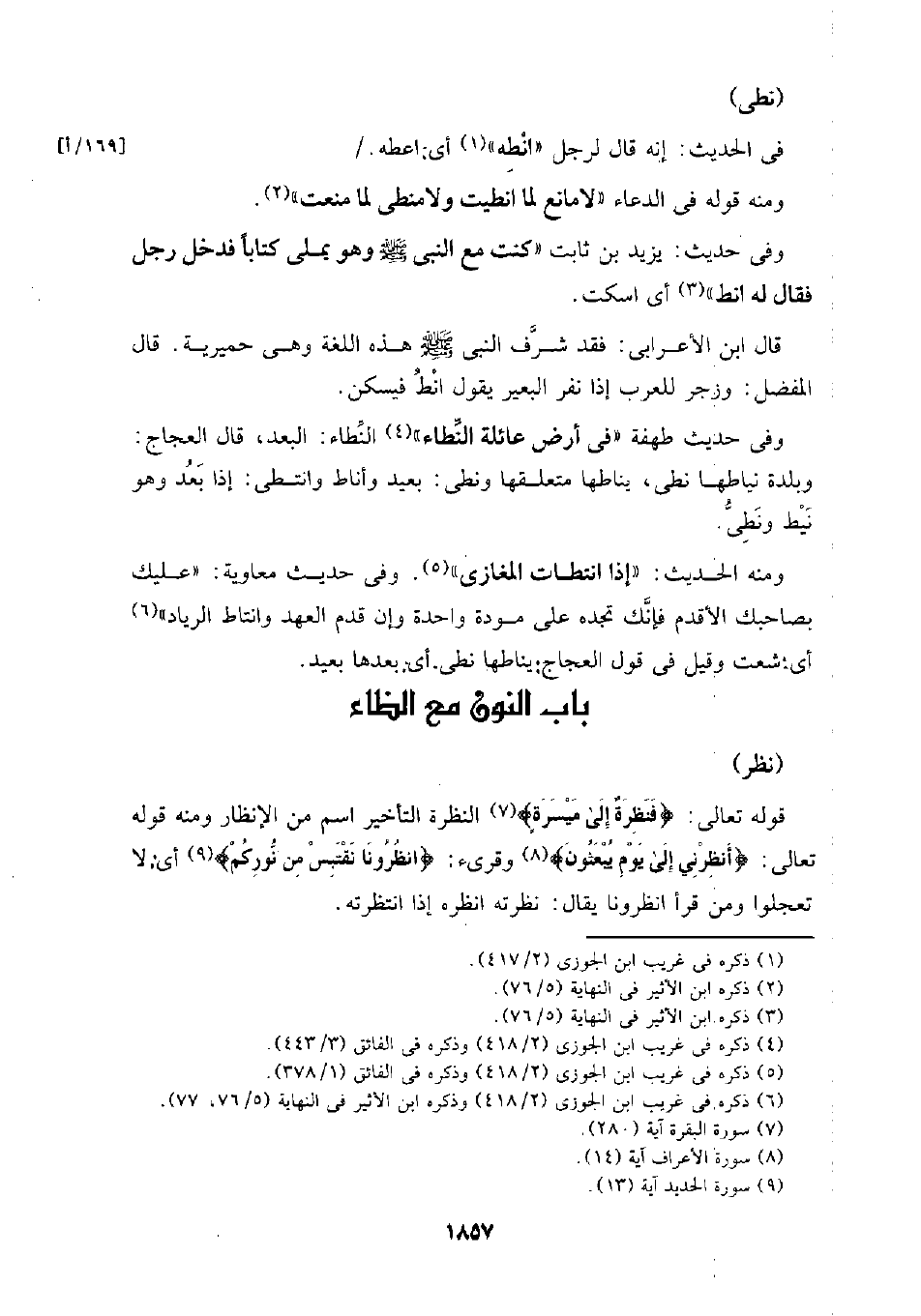 ومنه الحديث: (إذا انتطات المغازي). وفي حديث معاوية: (عليك بصاحبك الأقدم فإنك تجده على مودة واحدة وإن قدم العهد وانتاط الرياد) أي: شعت وقيل في قول العجاج: يناطها نطى. أي: بعدها بعيد.