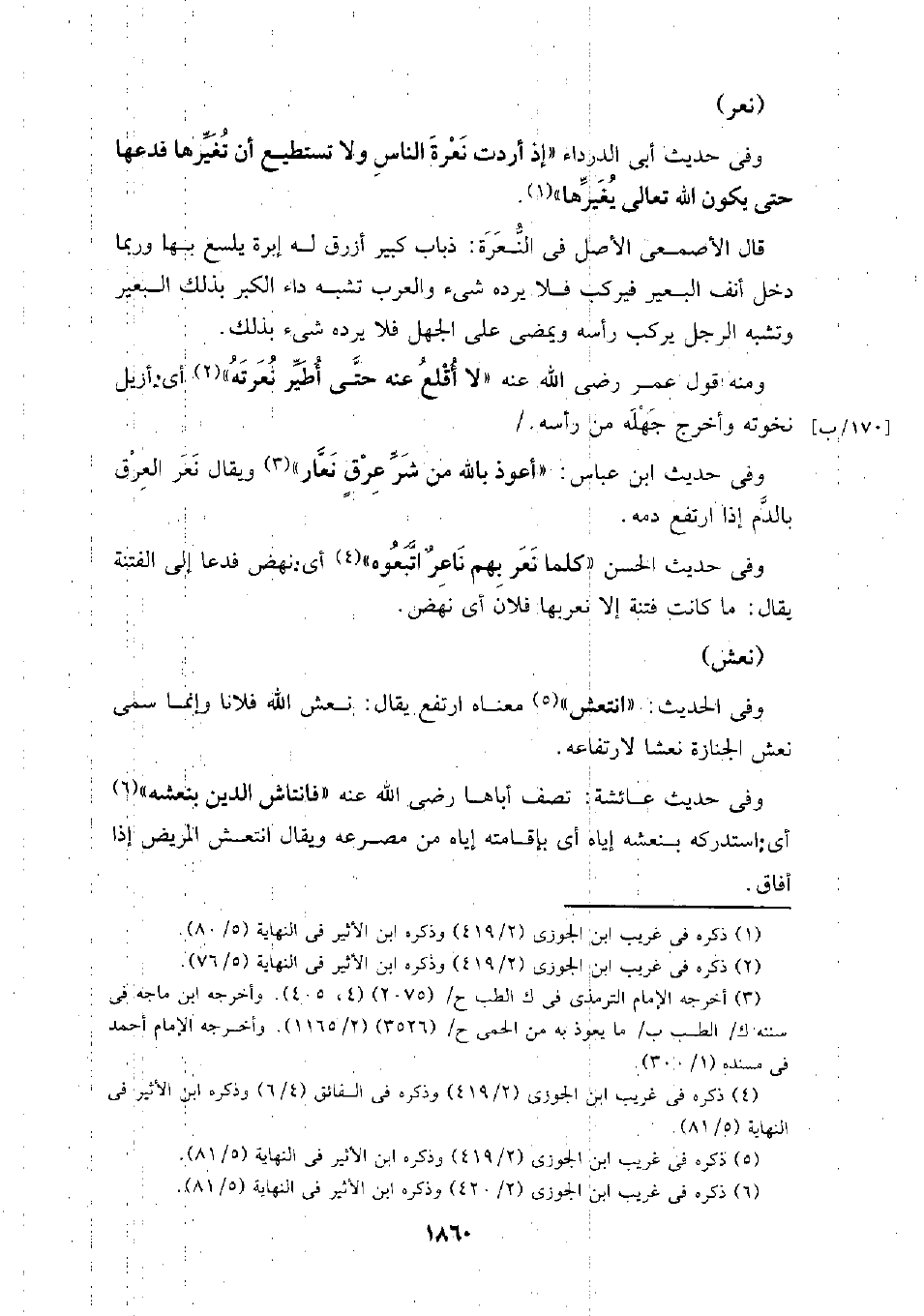 وفي حديث أبي الدرداء (إذ أردت نعرة الناس ولا تستطيع أن تغيرها فدعها حتى يكون الله تعالى يغيرها).