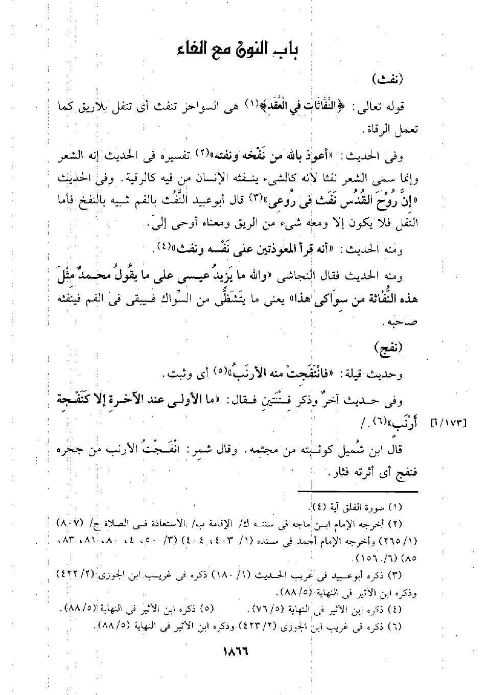 وفي الحديث: (أعوذ بالله من نخفه ونفثه) تفسيره في الحديث إنه الشعر وإنما سمى الشعر نفثا لأنه كالشيء ينفثه الإنشان من فيه كالرقية. وفي الحديث (إن روح القدس نفث في روعي) قال أبو عبيد النفث بالفم شبيه بالنفخ فأما التفل فلا يكون إلا ومعه شيء من الريق ومعناه أوحى إلي