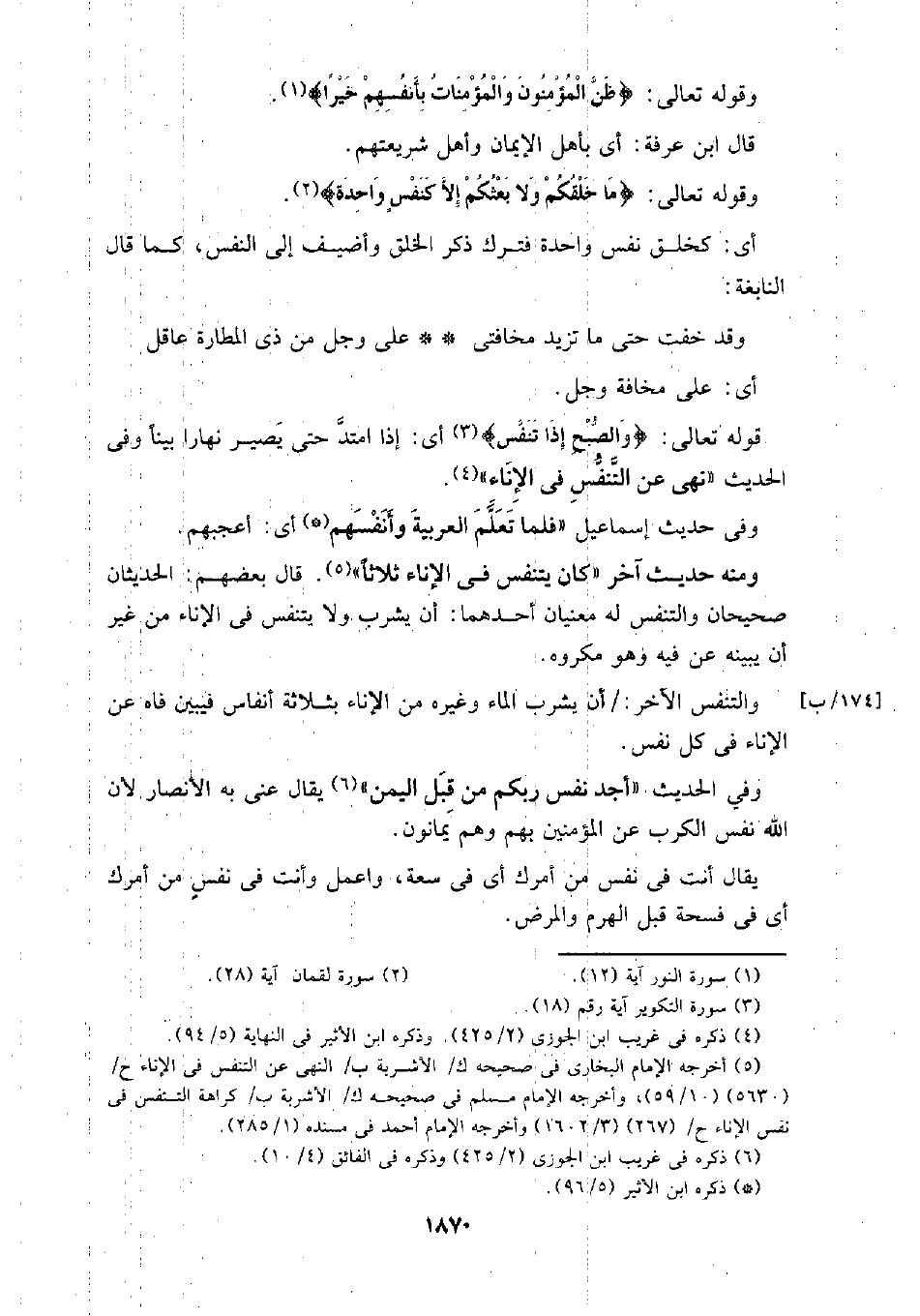 وفي الحديث (أجد نفس ربكم من قبل اليمين) يقال عني به الأنصار لأن الله نفس الكرب عن المؤمنين بهم وهم يمانون.