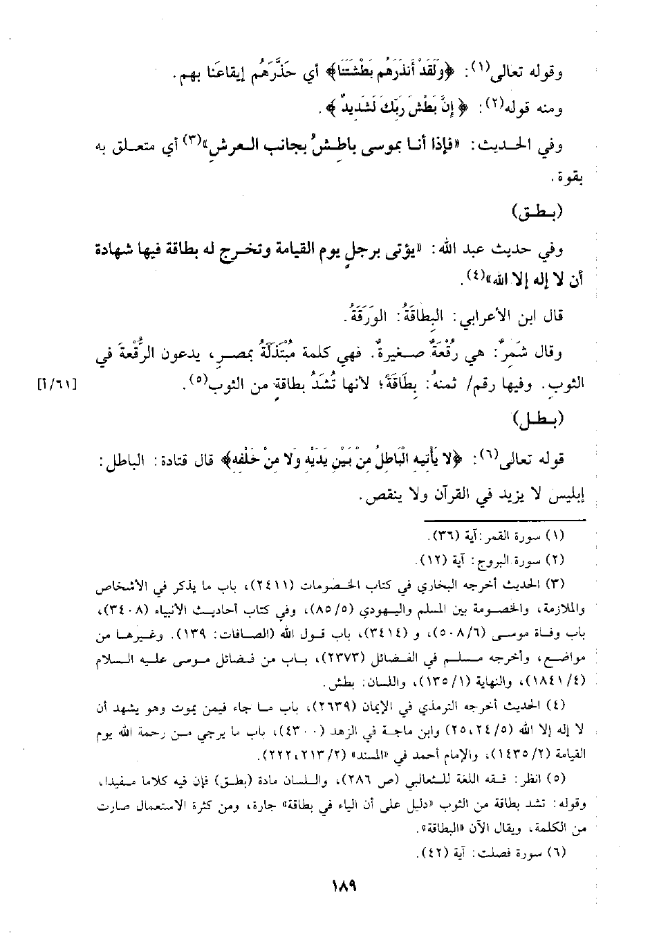 وقال شمر: هي رقعة صغيرة. فهي كلمة مبتذلة بمصر، يدعون الرقعة في الثوب. وفيها رقم/ ثمنه: بطاقة؛ لأنها تشد بطاقة من الثوب.