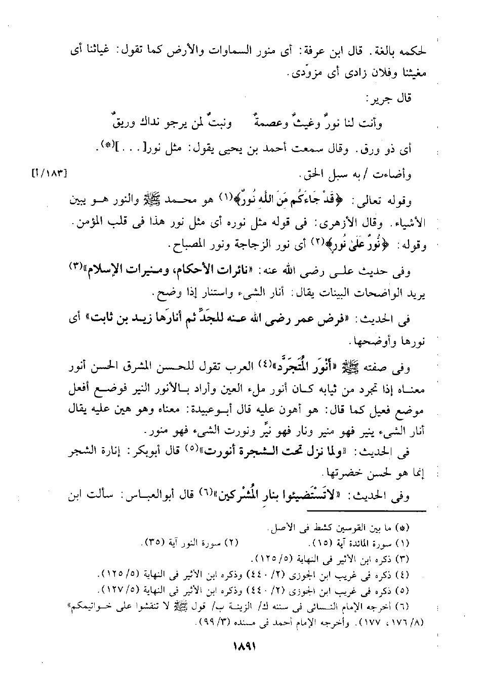 وفي حديث علي رضي الله عنه: (نائرات الأحكام، ومنيرات الإسلام)