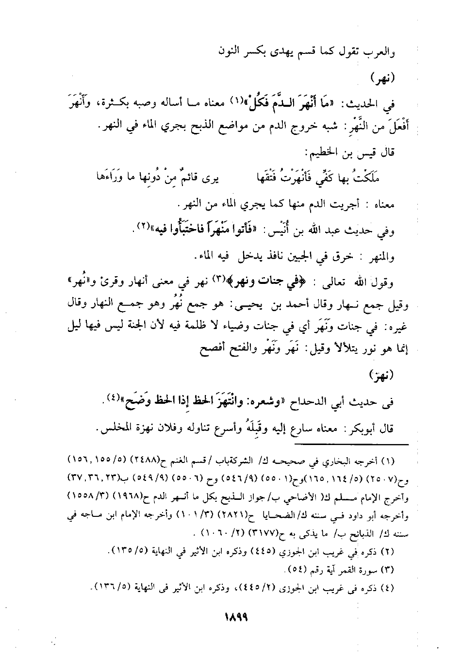 في الحديث: (ما أنهر الدم فكل) معناه ما أساله وصبه بكثرة، وأنهر أفعل من النهر: شبه خروج الدم من مواضع الذبح بجري الماء في النهر.