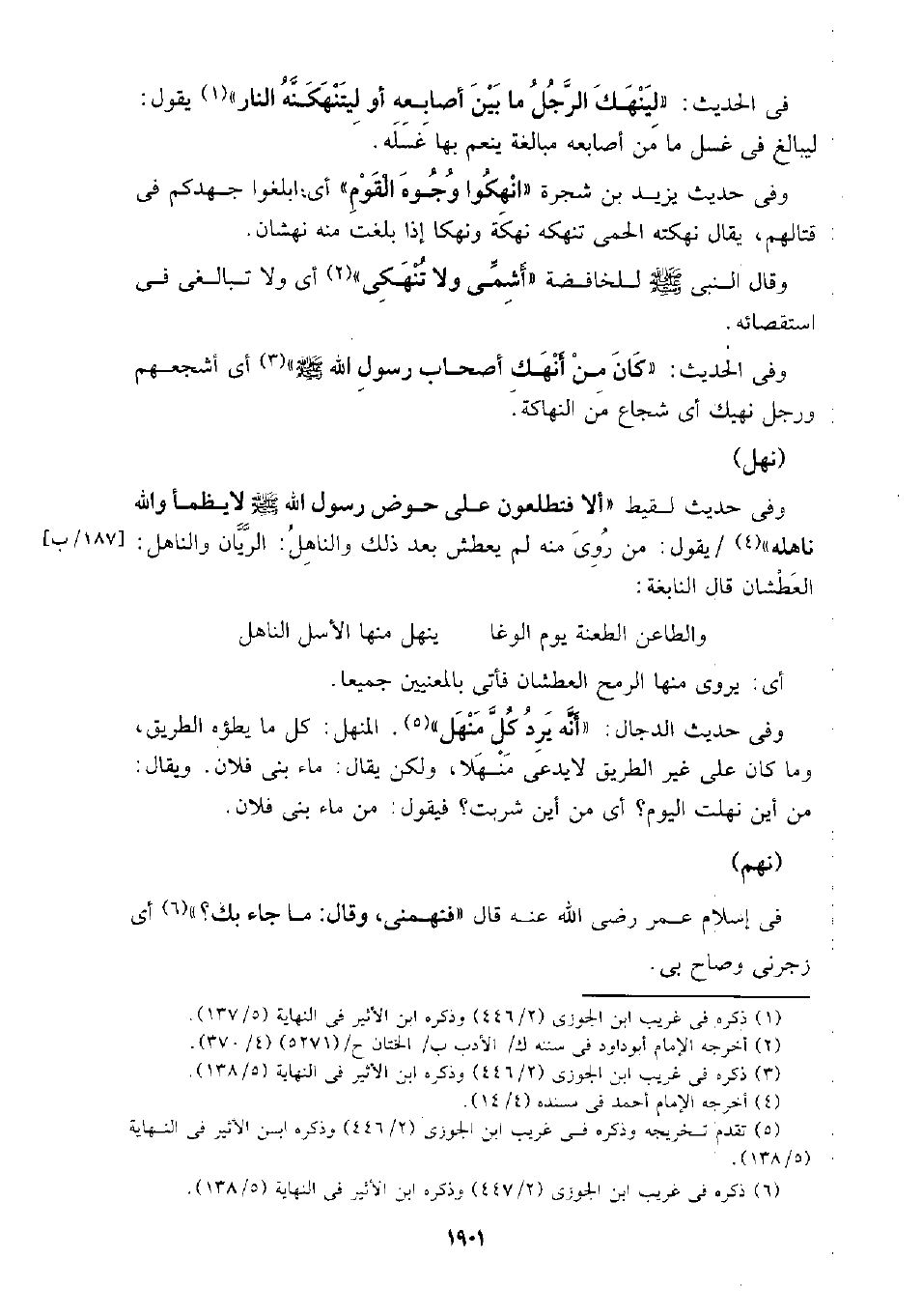 في الحديث: (لينهك الرجل ما بين أصابعه أو لينتهكنه النار) يقول: ليبالغ في غسل ما من أصابعه مبالغة ينعم بها غسله.