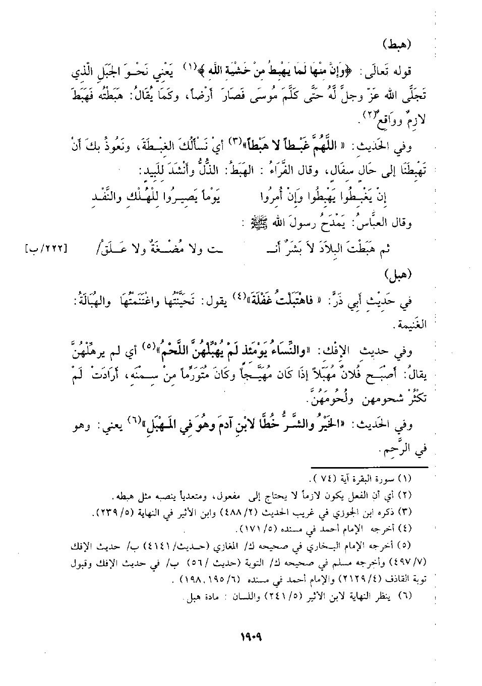 وفي الحديث: (اللهم غبطا لا هبطا) أي نسألك الغبطة، ونعوذ بك أن تهبطنا إلى حال سفال، وقال الفراء: الهبط: الذل وأنشد للبيد: