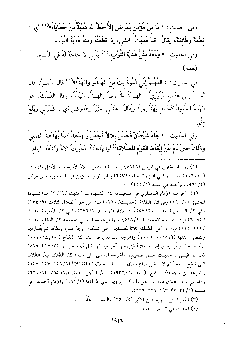 في الحديث: (اللهم إني أعوذ بك من الهدو والهدة) قال شمر: قال أحمد بن عتاب المروزي: الهدة الخسوف والهد: الهدم، وقال الليث: هو الهدم الشديد كحائط يهد بمرة ويقال: هدني الخبر وهدركنى أي: كسرني وبلغ مني.