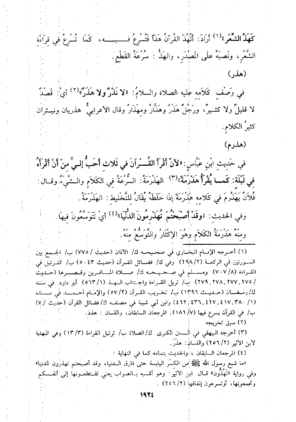 كهذ الشعر) أراد: أتهذ القرآن هذا فتسرع فيه، كما تسرع في قراءة الشعر، ونصبه على المصدر، والهذ: سرعة القطع.