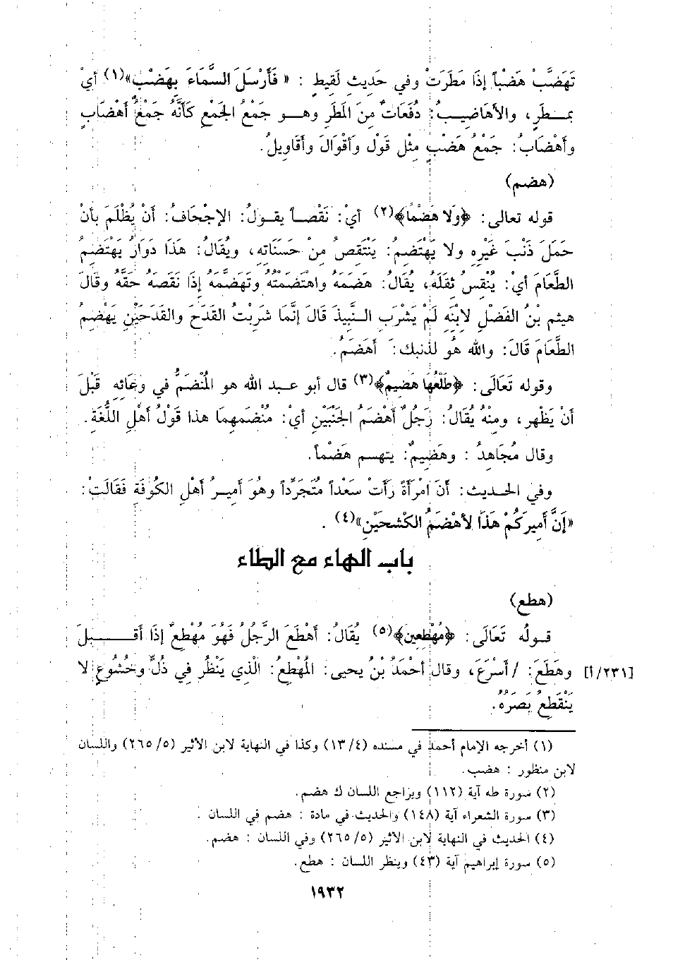 تهضب هضبًا إذا مطرت وفي حديث لقيط: (فأرسل السماء بهضب) أي بمطر، والأهاضيب: دفعات من المخطر وهو جمع الجمع كأنه جمع أهضاب وأهضاب: جمع هضب مثل قول وأقوال وأقاويل.