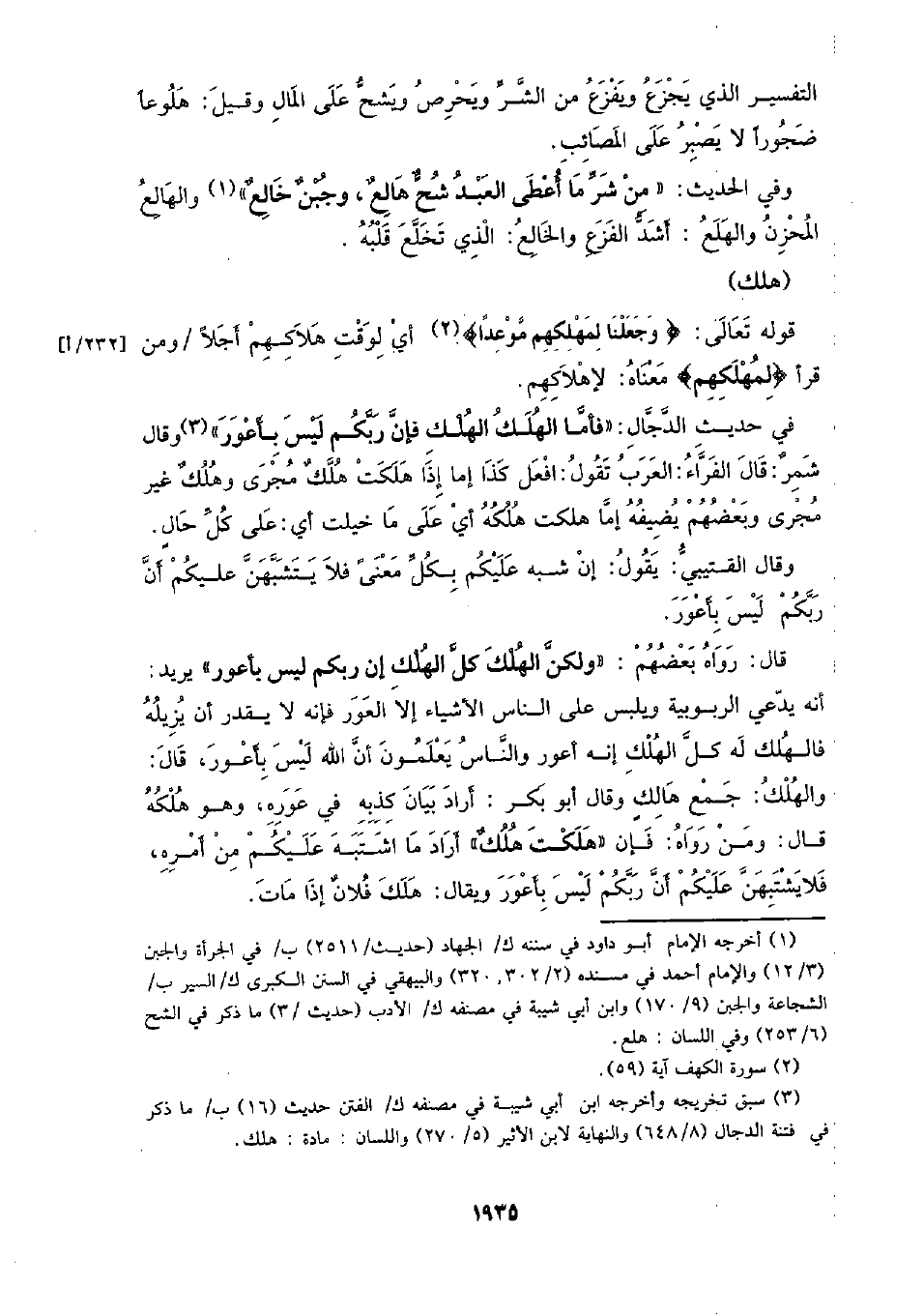 في حديث الدجال: (فأما الهلك الهلك فإ ربكم ليس بأعور) وقال شمر: قال الفراء: العرب تقول: افعل كذا إما إذا هلكت هلك مجرى وهلك غير مجرى وبعضهم يضيفه إما هلكت هلكه أي على ما خيلت أي: على كل حال.