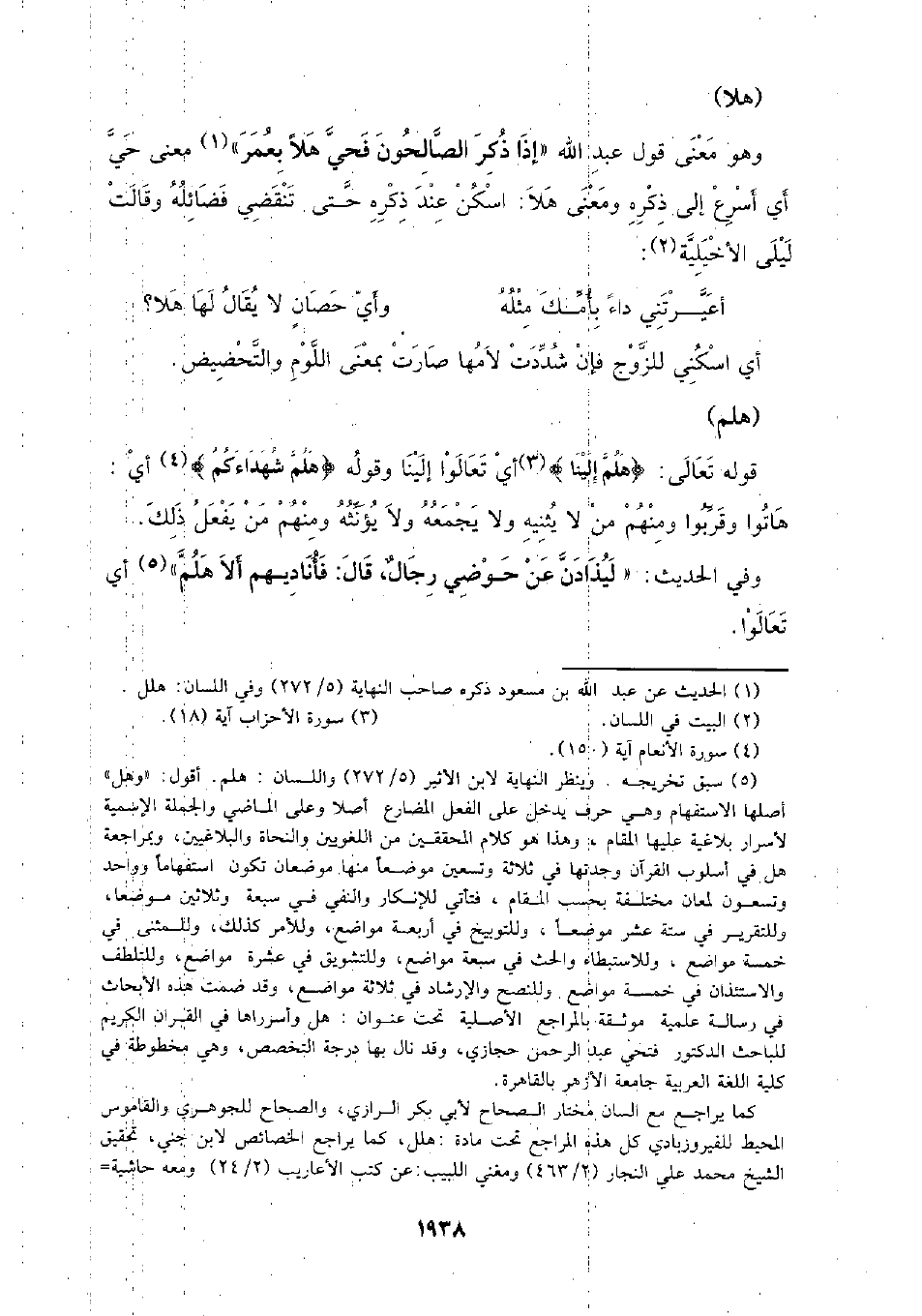 وهو معنى قول عبد الله (إذا ذكر الصالحون فحي هلا بعمر) معنى حي: أي أسرع إلى ذكره ومعنى هلا: اسكن عند ذكره حتى تنقضي فضائله وقالت ليلى الأخيلية: