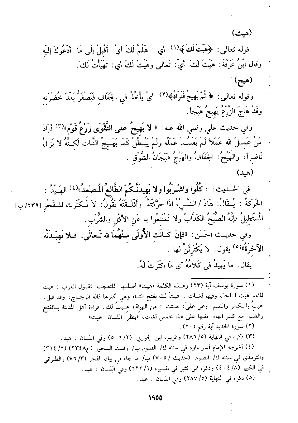 وفي حديث علي رضي الله عنه: (لا يهيج على التقوى زرع قوم) أراد من عمل لله عملا لم يفسد عمله ولم يبطل كما يهيج النبات لكنه لا يزال ناضرا، والهيج: الجفاف والهيج هيجان الشوق.