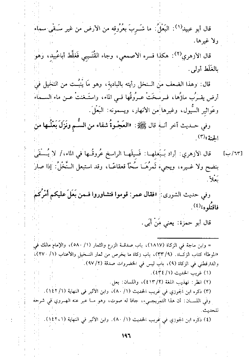 قال: وهذا الضعف من النخل رأيته بالبادية، وهو ما ينبت من النخيل في أرض يقرب ماؤها، فرسخت عروقها في الماء، واستغنت عن ماء السماء وعواثير السيول، وغيرها من الأنهار، ويسمونه: البعل.