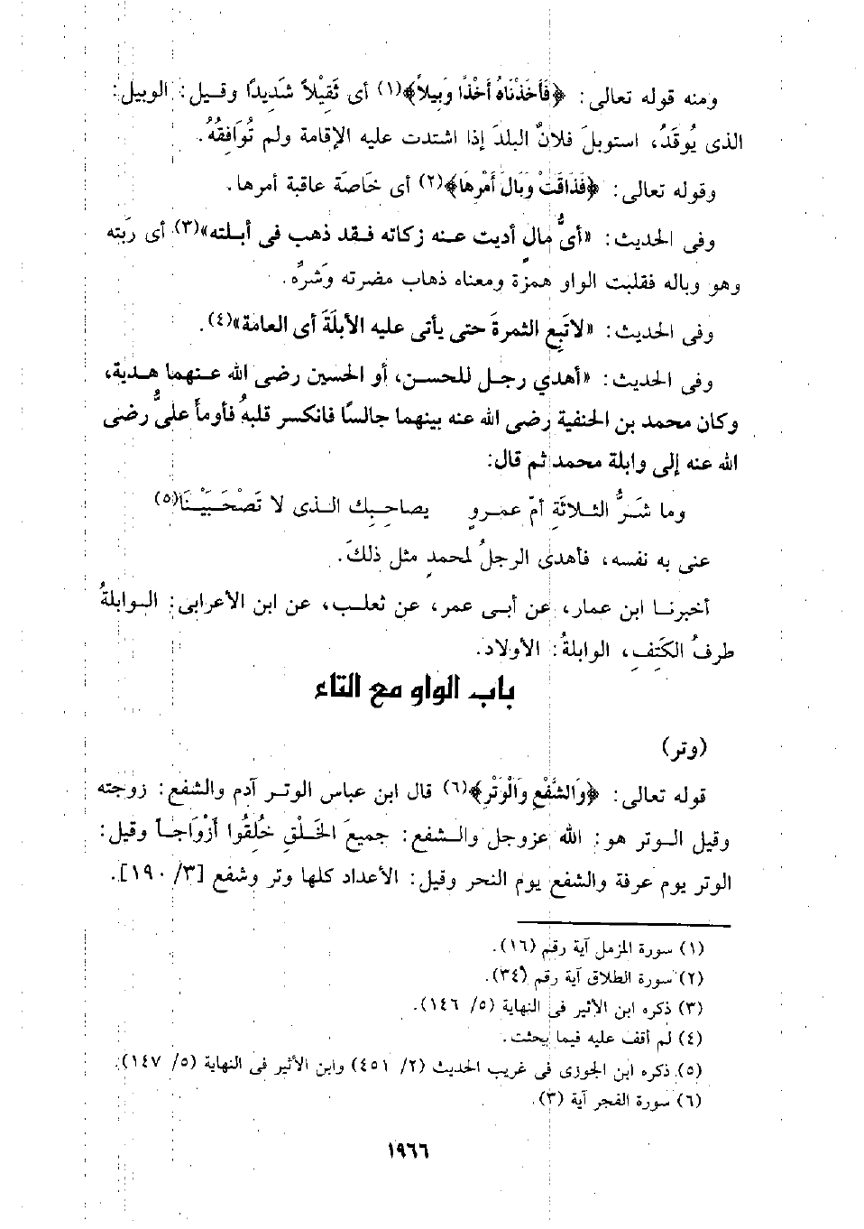 أخبرنا ابن عمار، عن أبي عمر، عن ثعلب، عن ابن الأعرابي: الوابلة طرف الكتف، الوابلة: الأولاد.