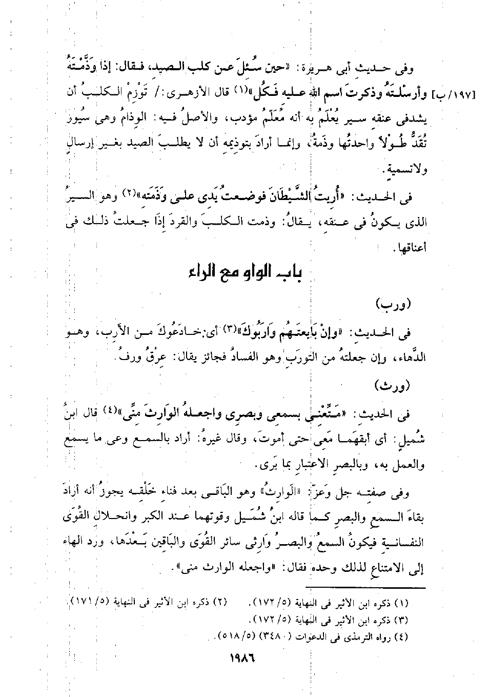في الحديث: (متعني بسمعي وبصري وأجعله الوارث مني) قال ابن شميل: أي أبقهما معي حتى أموت، وقال غيره: أراد بالسمع وعي ما يسمع والعمل به، وبالبصر الاعتبار بما يرى.