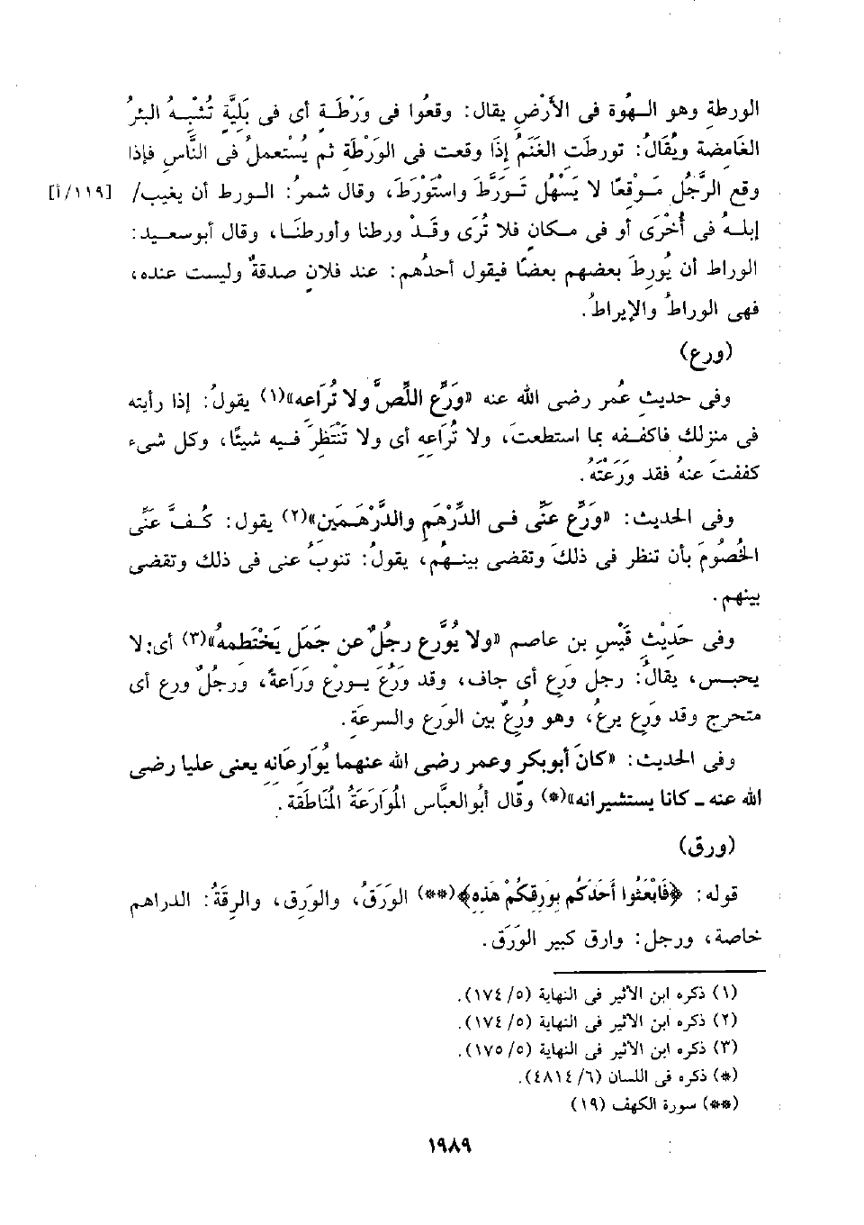 وفي الحديث: (كان أبو بكر وعمر رضي الله عنهما يوارعانه يعني عليا رضي الله عنه- كانا يستشيرانه) وقال أبو العباس الموارعة المناطقة.