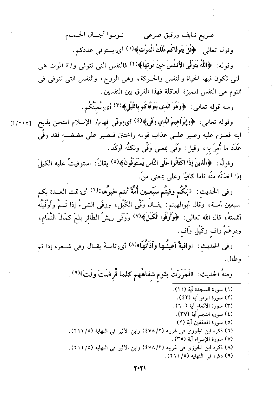 وقوله: {الله يتوفى الأنفس حين موتها} فالنفس التي تتوفى وفاة الموت هي التي تكون فيها الحياة والنفس والحركة، وهي الروح، والنفس التي تتوفى في النوم هي النفس المميزة العاقلة فهذا الفرق بين النفسين