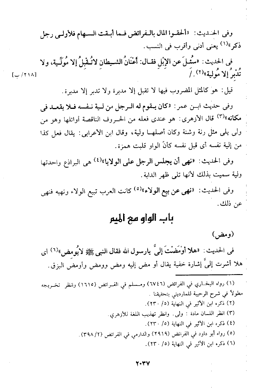 وفي الحديث: ألحقوا المال بالفرائض فما أبقت السهام فلأولى رجل ذكر) يعني أدنى وأقرب في النسب.