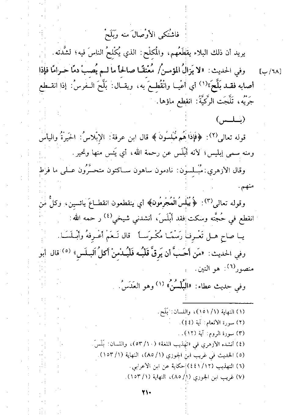 وقال الأزهري: مبلسون: نادمون ساهون ساكتون متحسرون على ما فرط منهم.