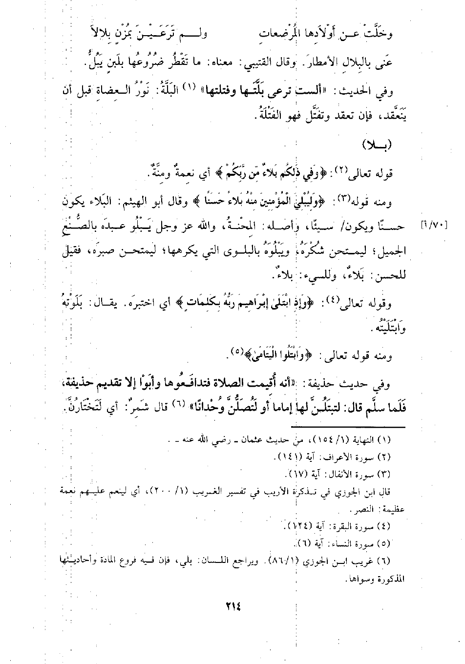 وفي حديث حذيفة: (أنه أقيمت الصلاة فتدافعوها وأبوا إلا تقديم حذيفة، فلما سلم قال: لتبتلن لها إماما أو لتصلن وحدانًا) قل شمر: أي لتختارن.