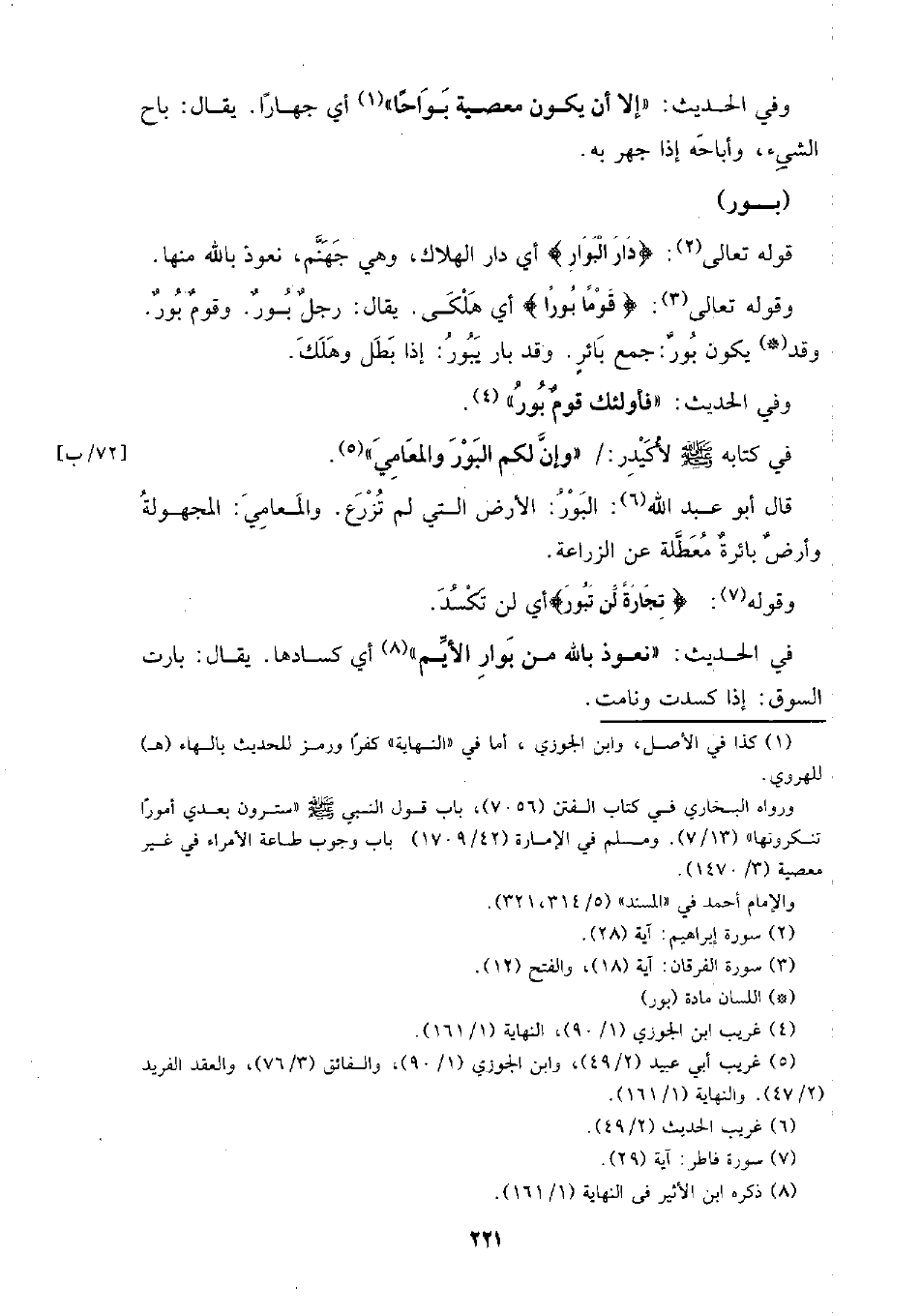 وفي الحديث: (إلا أن تكون معصية بواحًا) أي جهارًا. يقال: باح الشيء، وأباحه إذا جهر به.