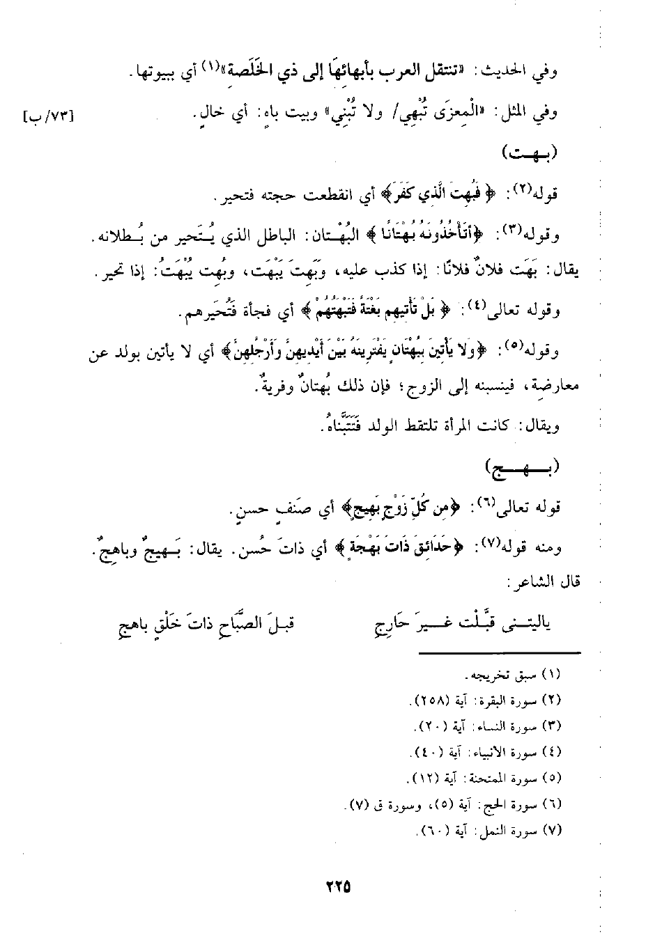 ومنه قوله: {حدائق ذات بهجة} أي ذات حسن. يقال: بهيج وباهج.