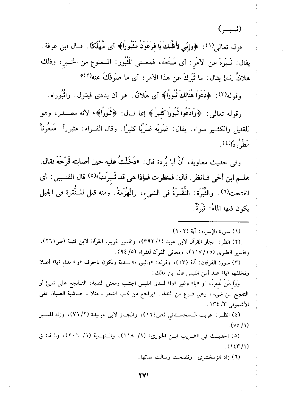قوله تعالى: {وإني لأظنك يا فرعون مثبورًا} أي مهلكًا. قال ابن عرفة: يقال: ثبره عن الأمر: أي منعه، فمعنى المثبور: الممنوع من الخير، وذلك هلاك (له) يقال: ما ثبرك عن هذا الأمر؛ أي ما صرفك عنه؟