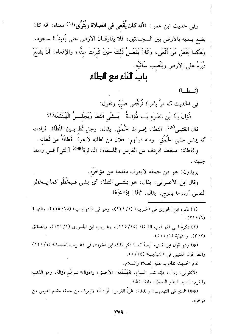 قال القتيبي: الثطا: إفراط الحمق. يقال: رجل ثط بين الثطأة. أرادت أنه يمشي مشى الحمق. ومنه قولهم: فلان من ثطاته لا يعرف قطاته من لطاته.