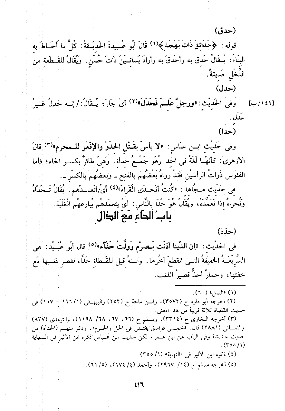 [141/ ب] وفي الحديث: (ورجل علم فحدل) أي جار؛ يقال: / إنه لحدل غير عدل.