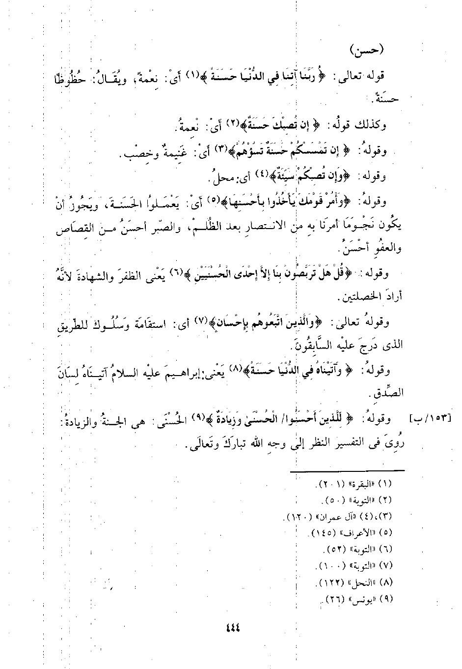 [153/ ب] وقوله: {للذين أحسنوا / الحسنى وزيادة} الحسنى: هي الجنة والزيادة: روى في التفسير النظر إلى وجه الله تبارك وتعالى.