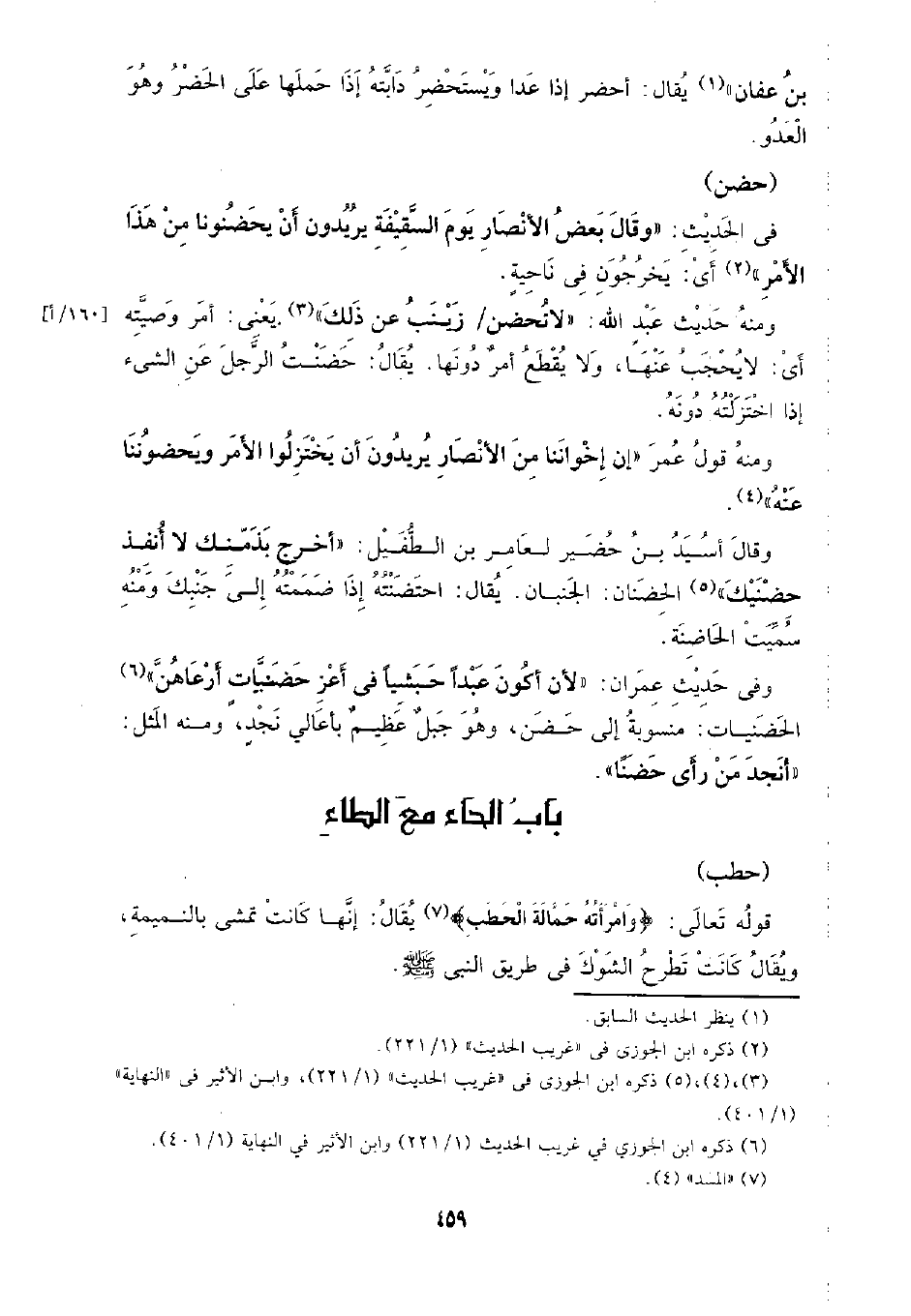 وقال أسيد بن حضير لعامر بن الطفيل: (أخرج بذمنك لا أنفذ حضنيك) الحضنان: الجنبان. يقال: احتضنته إذا ضممته إلى جنبك ومنه سميت الحاضنة.