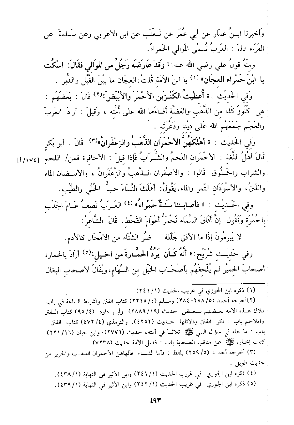ومنه قول علي رضي الله عنه: (وقد عارضه رجل من الموالي فقال: اسكت يا ابن حمراء العجان) يا ابن الأمة: قلت: العجان ما بين القبل والدبر.