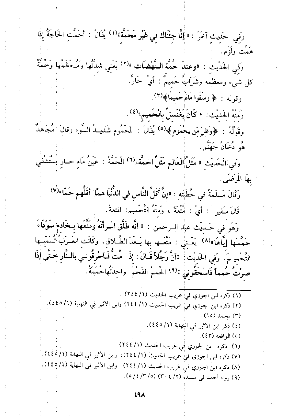 وفي الحديث: (وعند حمة النهضات) يعني شدتها ومعظمها وحمة كل شيء ومعظمه وشراب حميم: أي حار.