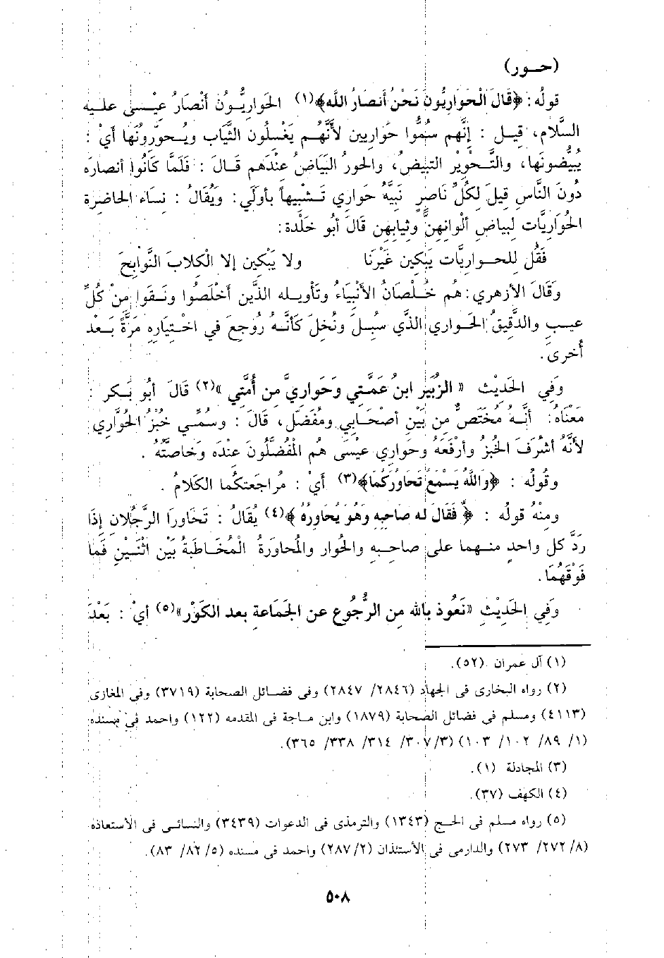 ومنه قوله: {فقال له صاحبه وهو يحاوره} يقال: تحاورا الرجلان إذا رد كل واحد منهما على صاحبه والحوار والمحاورة المخاطبة بين اثنين فما فوقهما.