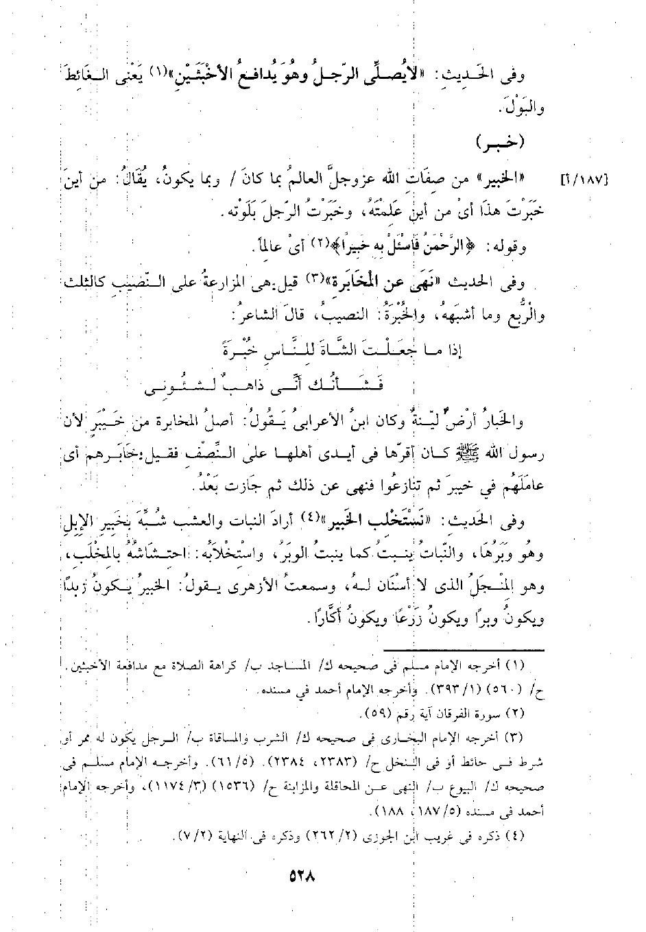 وفي الحديث: (نستخلب الخبير) أراد النبات والعشب شبه بخبير الإبل وهو وبرها، والنبات ينبت كما ينبت الوبر، واستخلابه: احتشاشه بالمخلب، وهو المنجل الذي لا أسنان له، وسمعت الأزهري يقول: الخبير يكون زبدًا ويكون وبرًا ويكون زرعًا ويكون أكارًا.