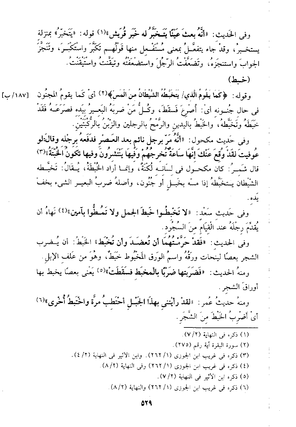 قال: شمر كان مكحول في لسانه لكنة، وإنما أراد الخبطة، يقال: تخبطه الشيطان يتخبطه إذا مسه بخبل أو جنون، وأصله ضرب البعير الشيء بخف يده.
