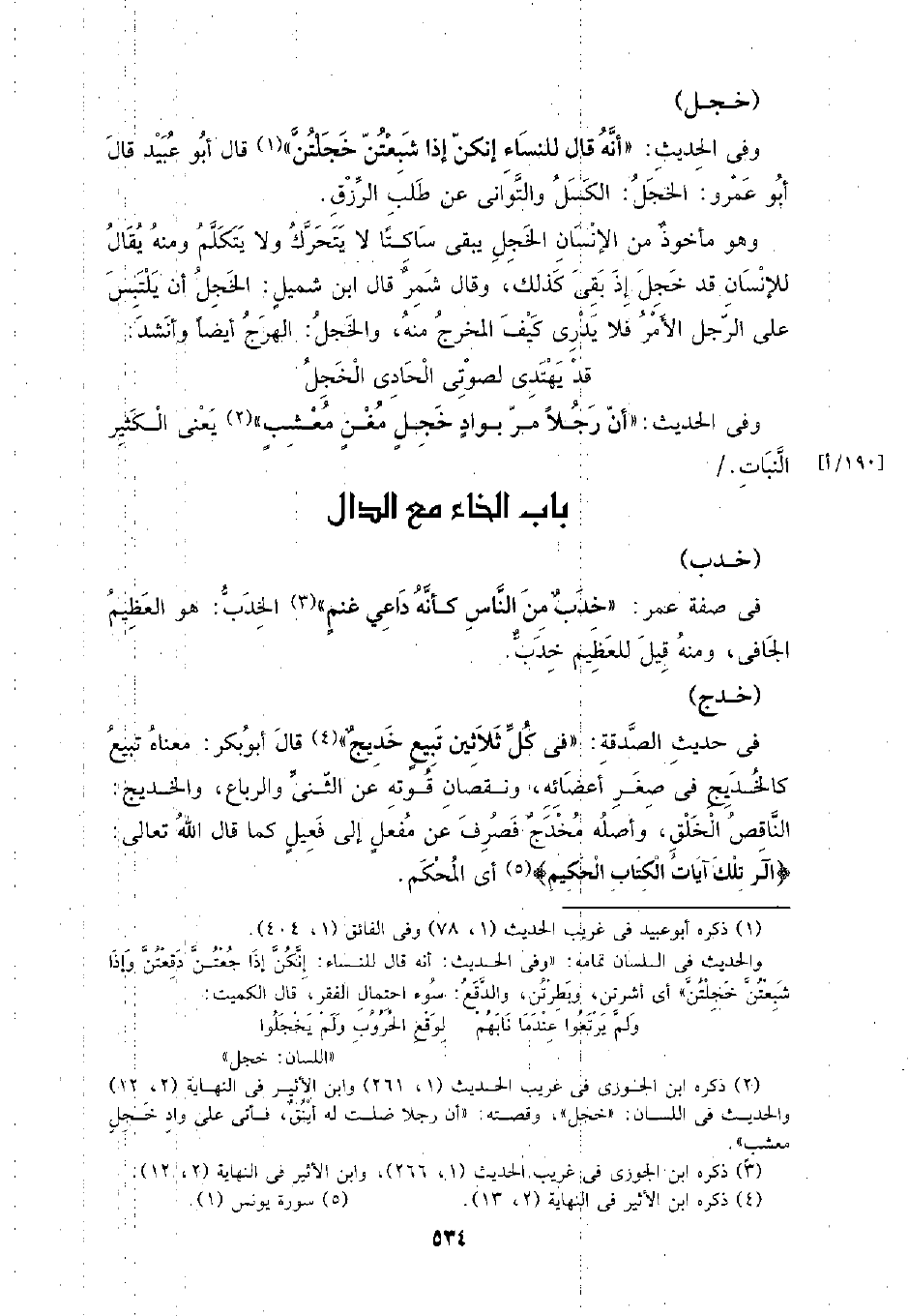 وهو مأخوذ من الإنسان الخجل يبق ساكتًا لا يتحرك ولا يتكلم ومنه يقال للإنسان قد خجل إذ بقى كذلك، وقال شمر قال ابن شمير: الخجل أن يلتبس على الرجل الأمر فلا يدري كيف المخرج منه، والخجل: الهرج أيضًا وأنشد: