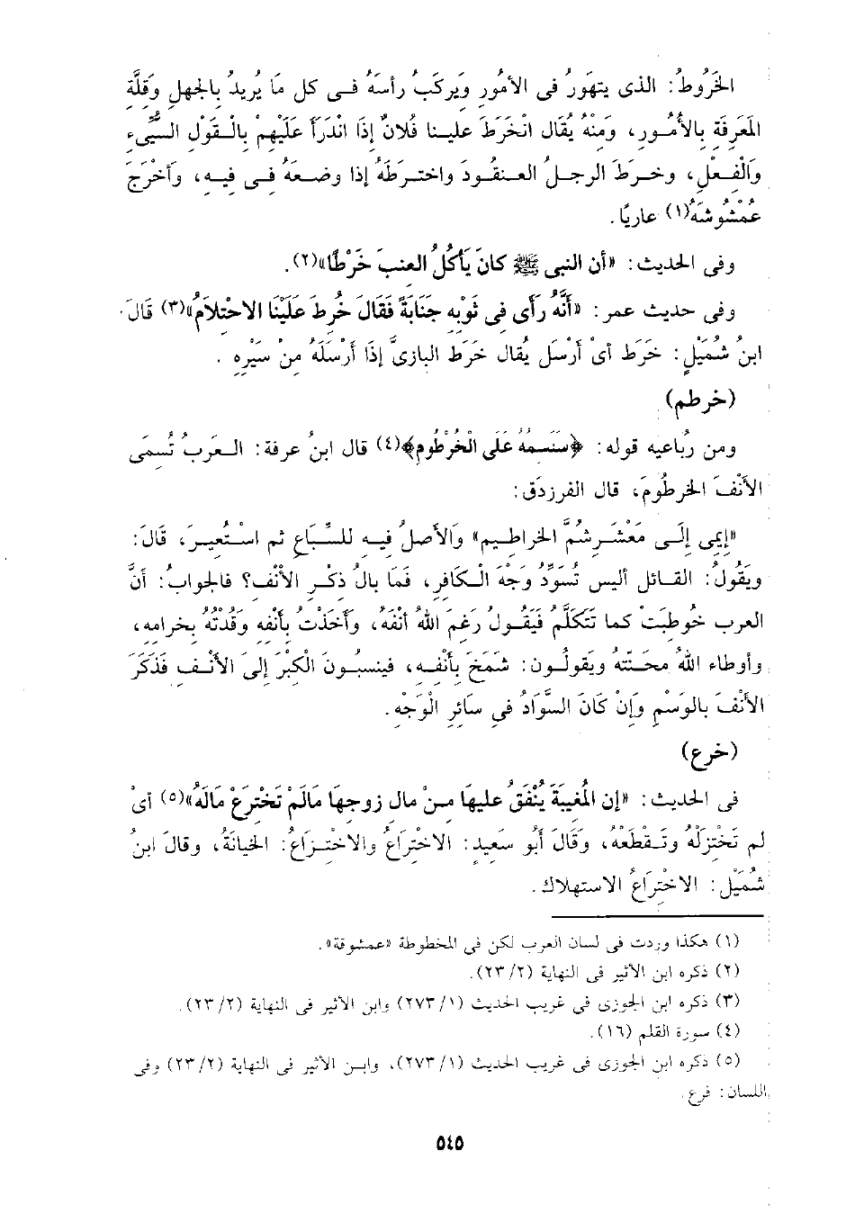 الخروط: الذي يتهور في الأمور ويركب رأسه في كل ما يريد بالجهل وقلة المعرفة بالأمور، ومنه يقال انخراط علينا فلأن إذا اندرًا عليهم بالقول السيئ والفعل، وخرط الرجل العنقود واخترطه إذا وضعه في فيه، وأخرج عمشوشه عاريًا.