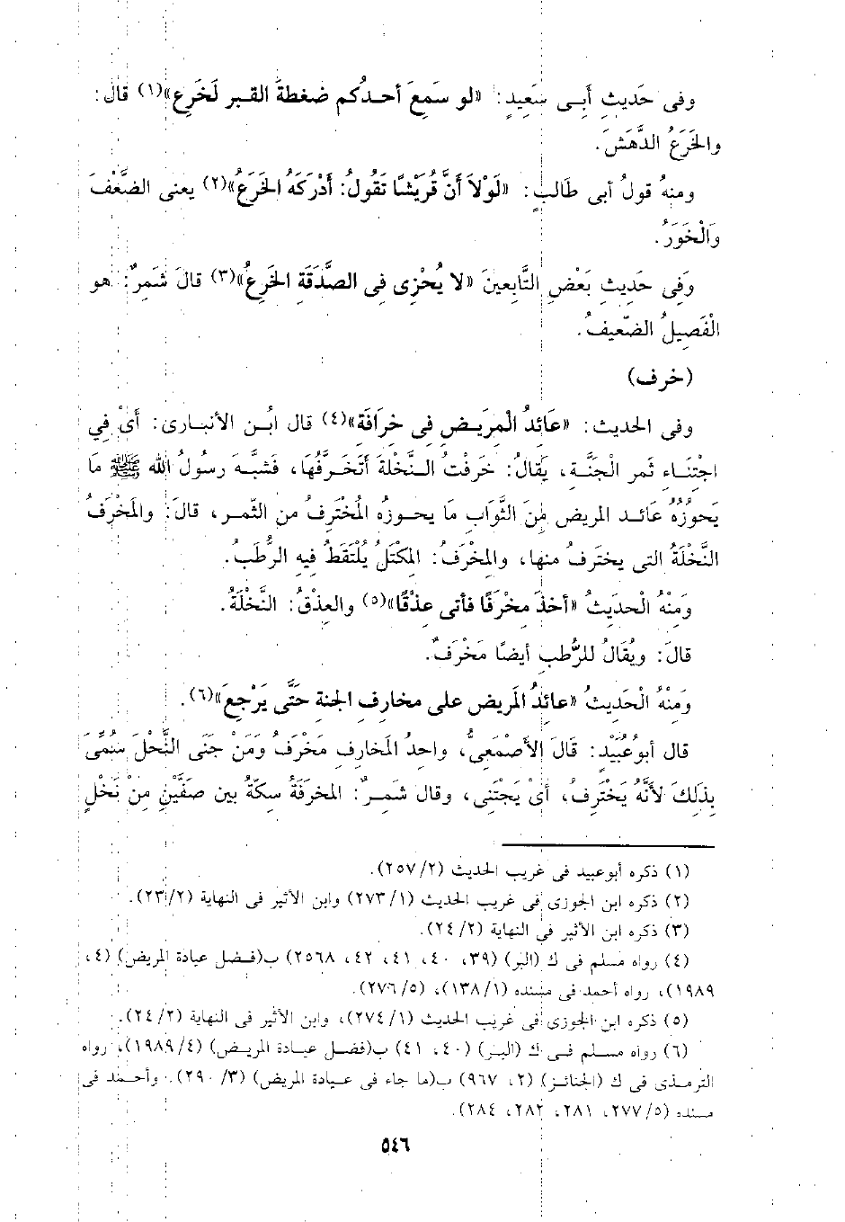 ومنه الحديث (عائد المريض على مخارف الجنة حتى يرجع).