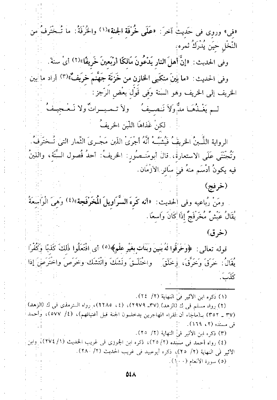 ومن رباعيه وفي الحديث: (أنه كره السراويل المخرقجة) وهي الواسعة يقال عيش مخرفج إذا كان واسعًا