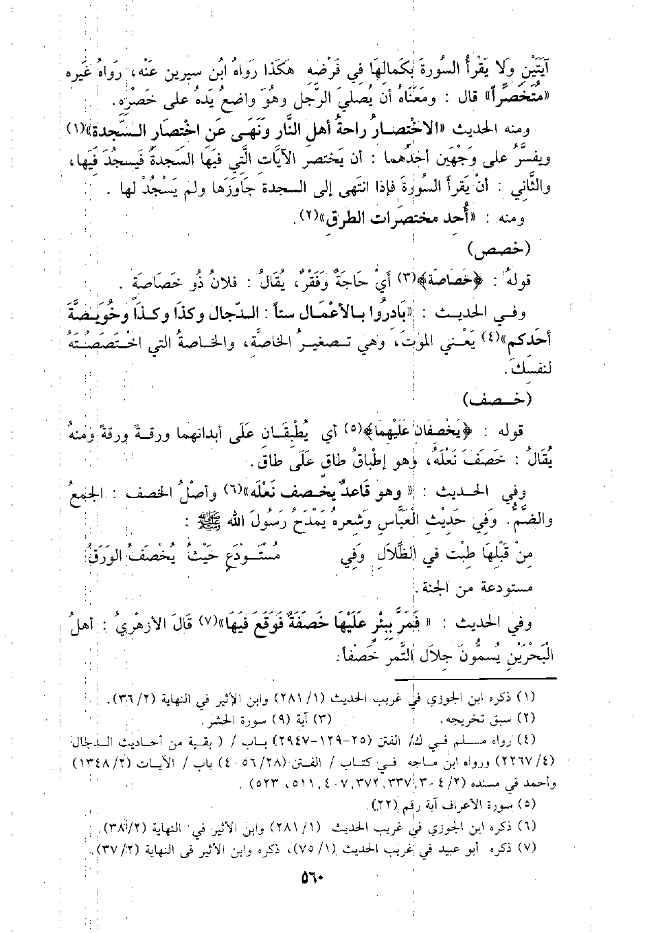 ومنه الحديث: (الاختصار راحة أهل النار ونهى عن اختصار السجدة).