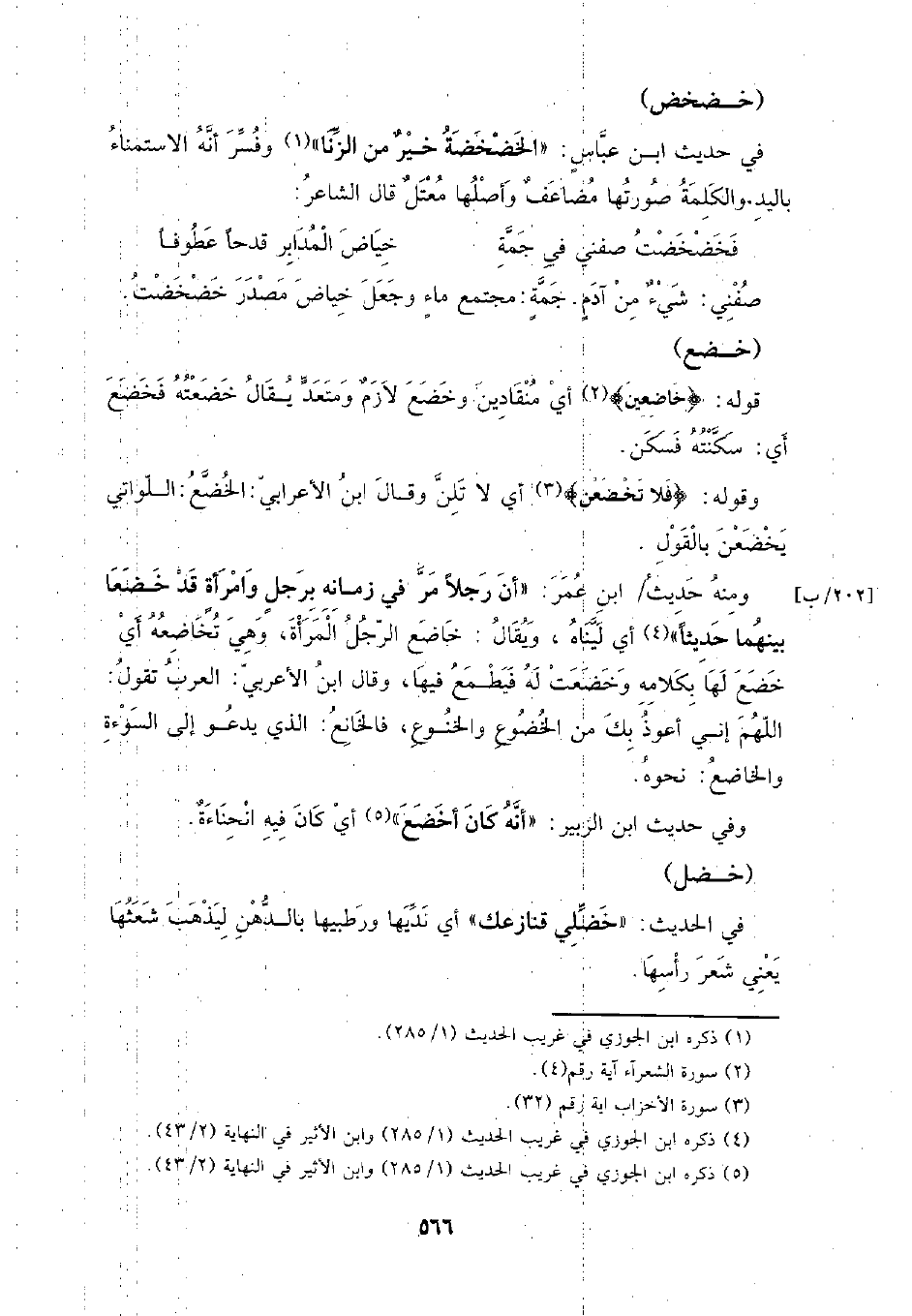 [202/ ب] ومنه حديث/ ابن عمر: (أن رجلا مر في زمانه برجل وأمرأة قد خضعا بينهما حديثًا) أي ليناه، ويقال: خاضع الرجل المرأة، وهي تخاضعه أي خضع لها بكلامه وخضعت له فيطمع فيها، وقال ابن الأعرابي: العرب تقول: اللهم إني أعوذ بك من الخضوع والخنوع، فالخانع: الذي يدعو إلى السوءة والخاضع: نحوه.