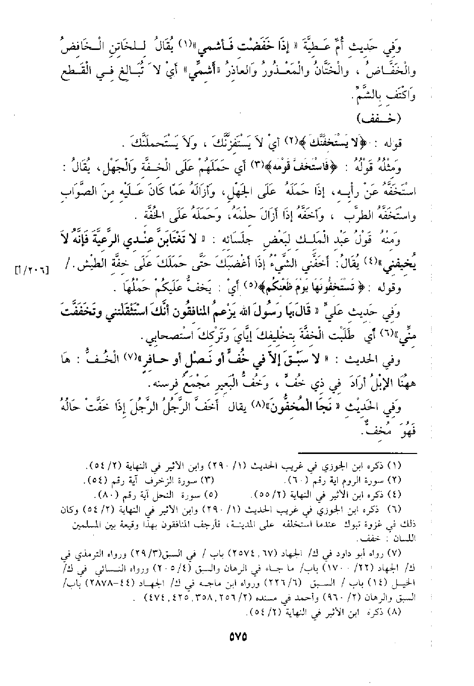 وفي الحديث: (لا سبق إلا في خف أو نصل أو حافر) الخف: ها ههنا الإبل أراد في ذي خف، وخف البعير مجمع فرسنه.